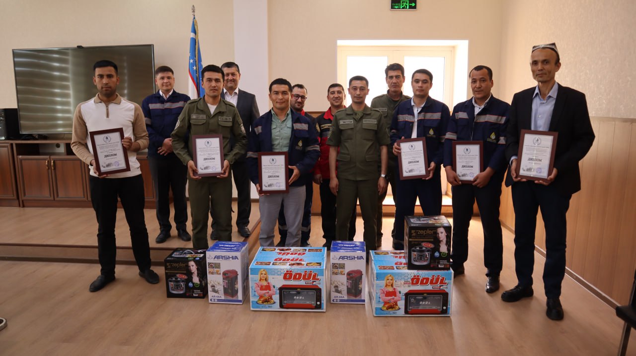 The results of the competition among the working personnel: 1st place - locksmith of the 9th workshop Abduvahob Irgashev, who correctly answered 20 questions in 1 minute 48 seconds and demonstrated the principle of operation of a filtering gas mask in 7 seconds.